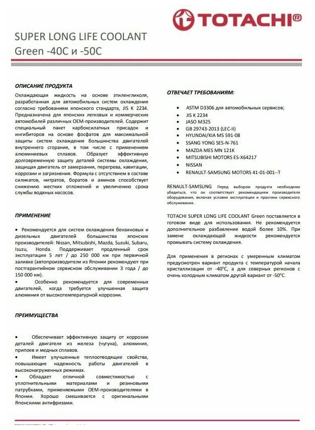 totachi super long life coolant green -40c (4l)_антифриз! готовый зеленый\ 2 049 ₽ Подробнее