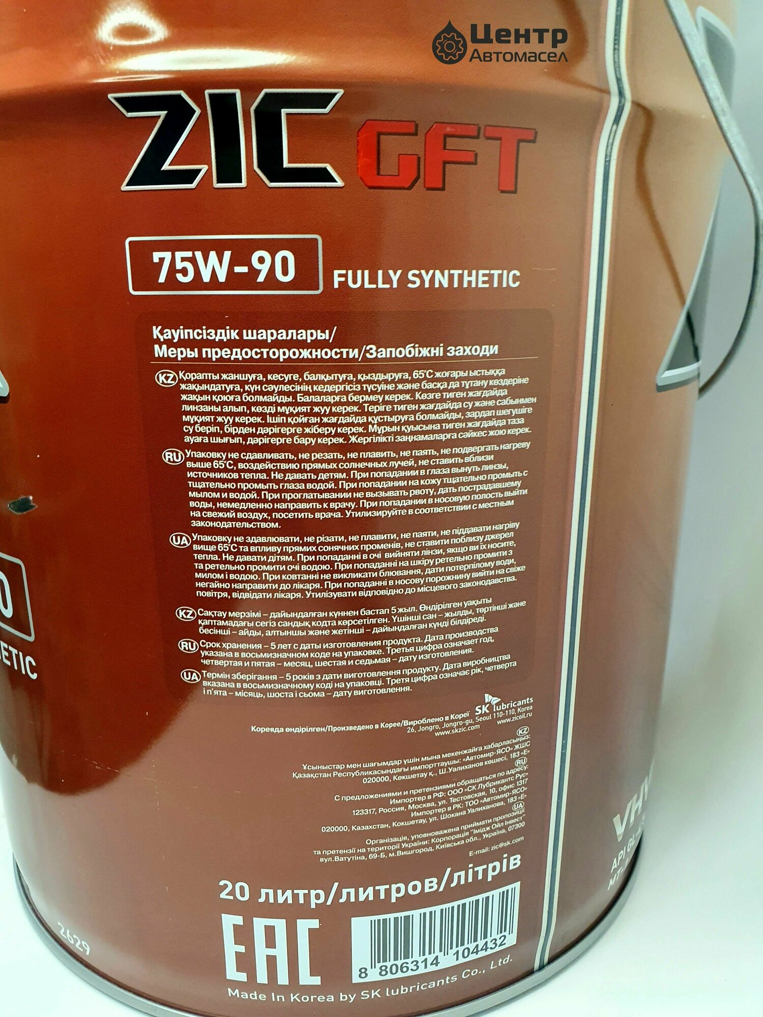 Трансмиссионные масла ZIC GFT 75W-90 20л трансмиссионное масло