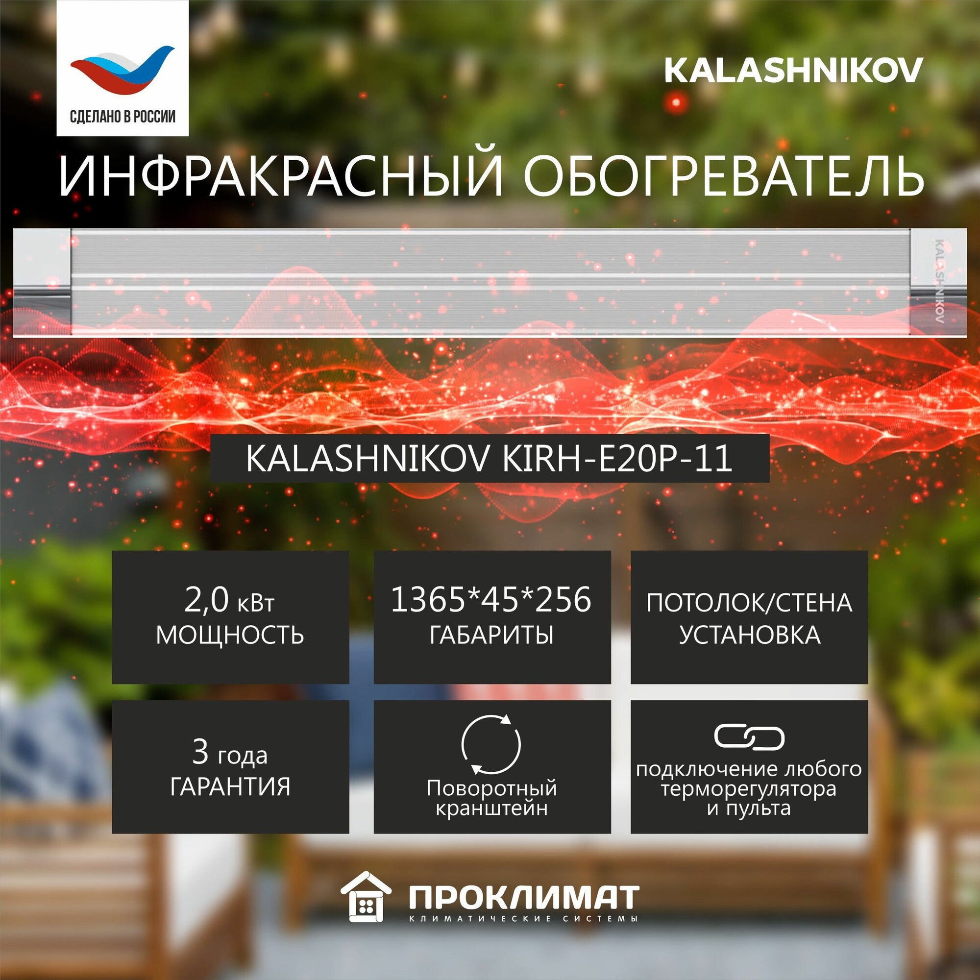 Обогреватель ИК KALASHNIKOV KIRH-E20P-11/2кВт/20м2/панель IP20/h установки 4,5м/220В