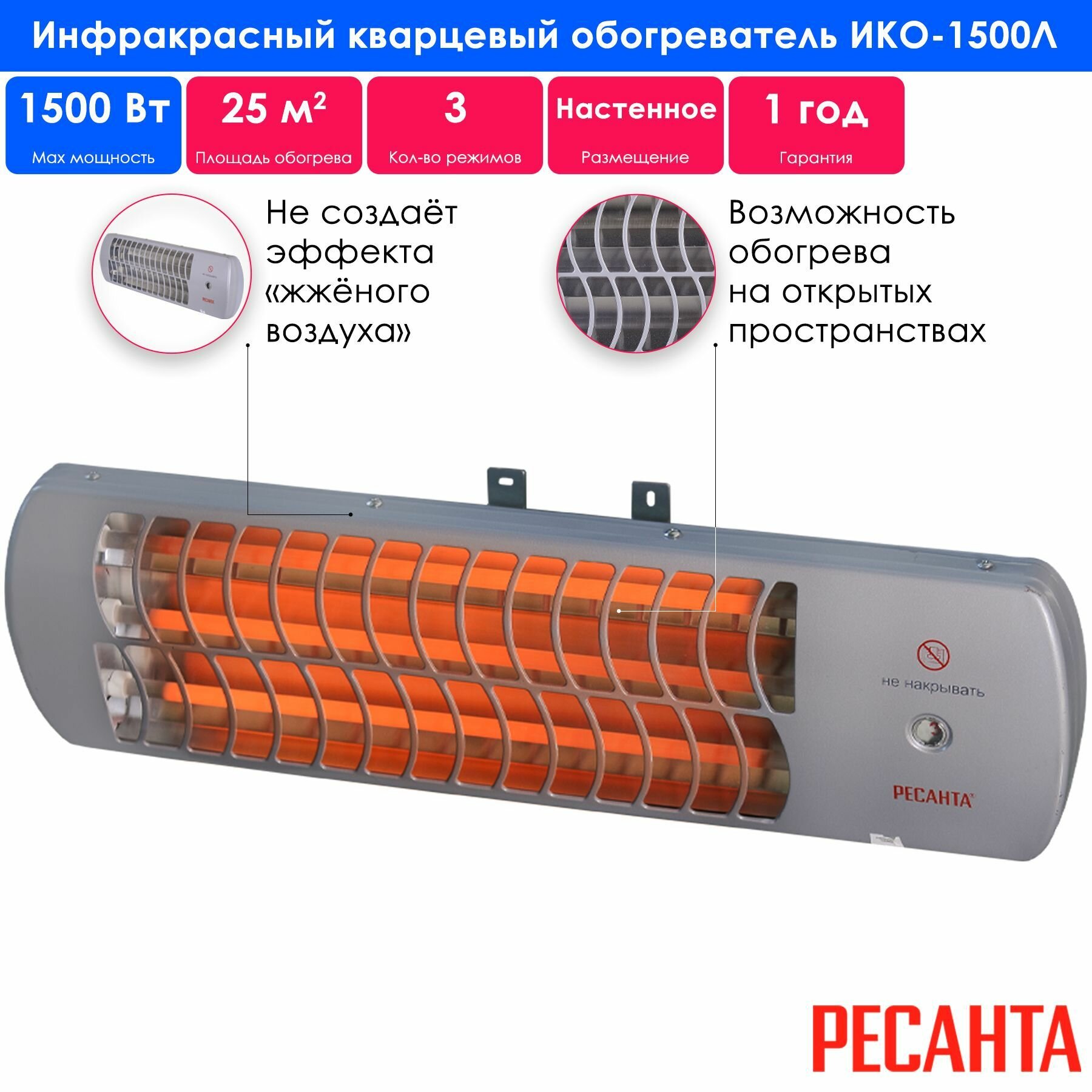Обогреватель инфракрасный РЕСАНТА ИКО-1500Л