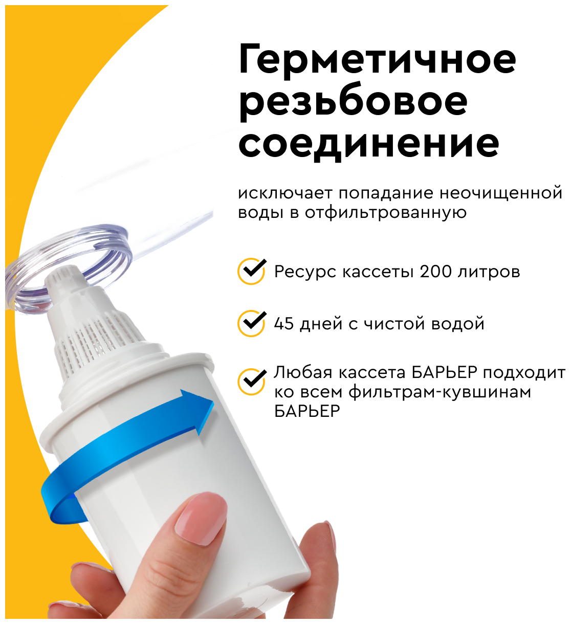 Картридж-кассета Барьер Классик для кувшина с ресурсом 200 литров 340 ₽ Подробнее