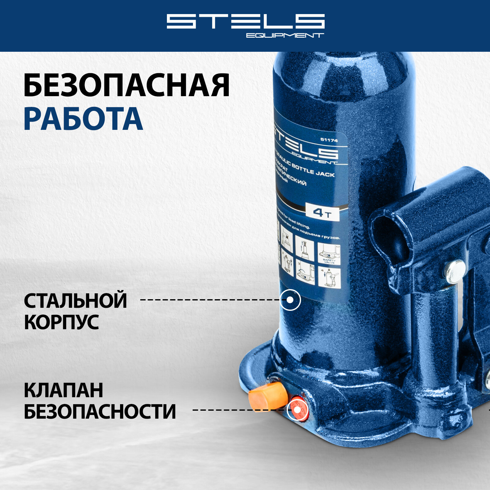 STELS Домкрат гидравлический бутылочный, 4 т STELS 51174