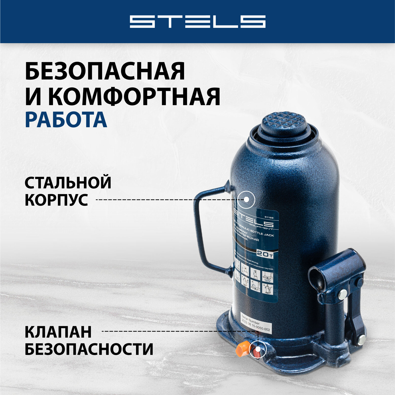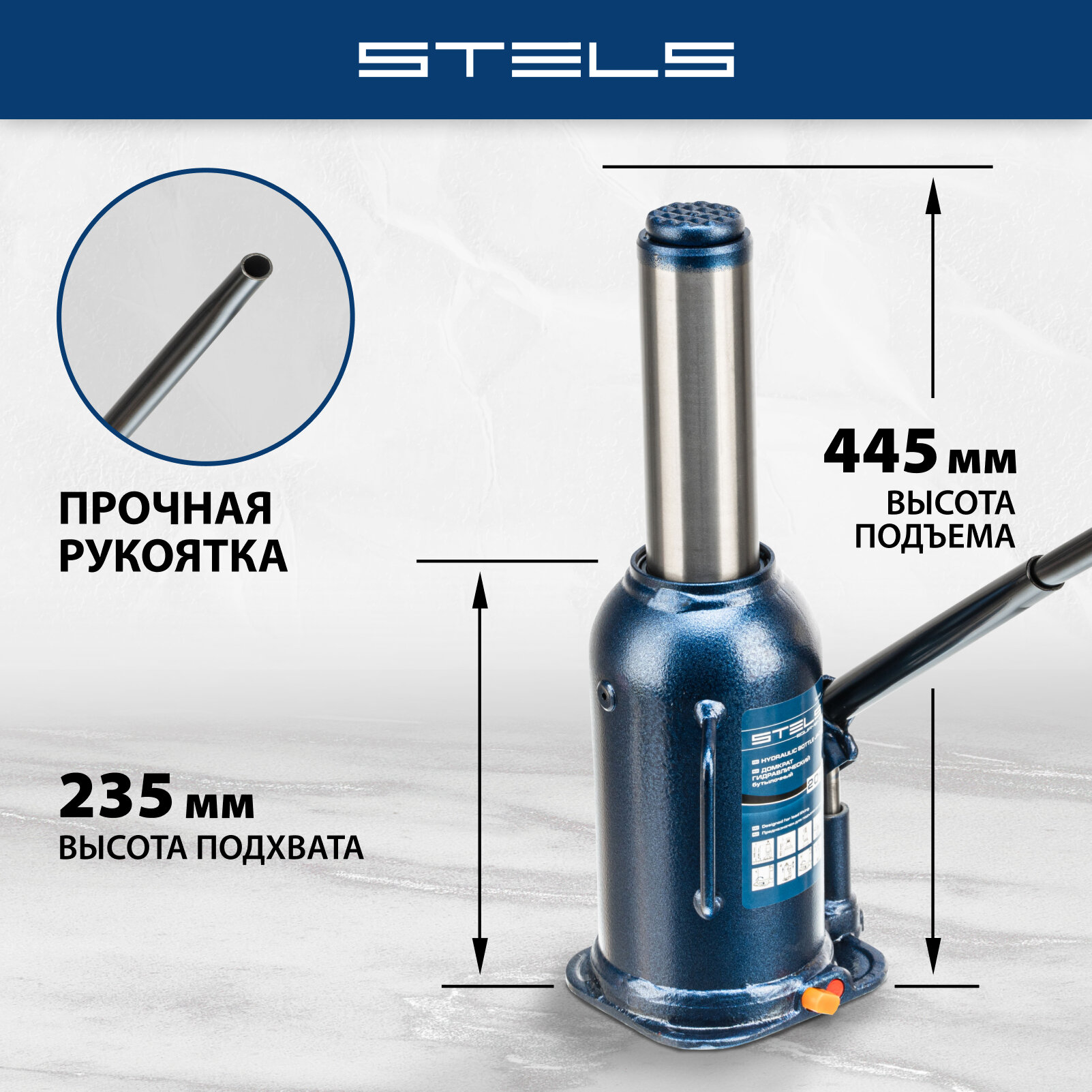 STELS 51169 Домкрат гидравлический бутылочный, 20 т, h подъема 235-445 мм Stels 51169 STELS 51169