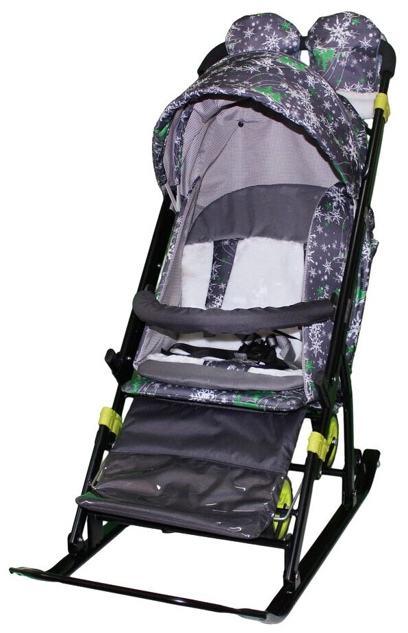 Санки-коляска SNOW GALAXY Kids-3-1 Ёлки на сером на больших колесах+сумка+варежки