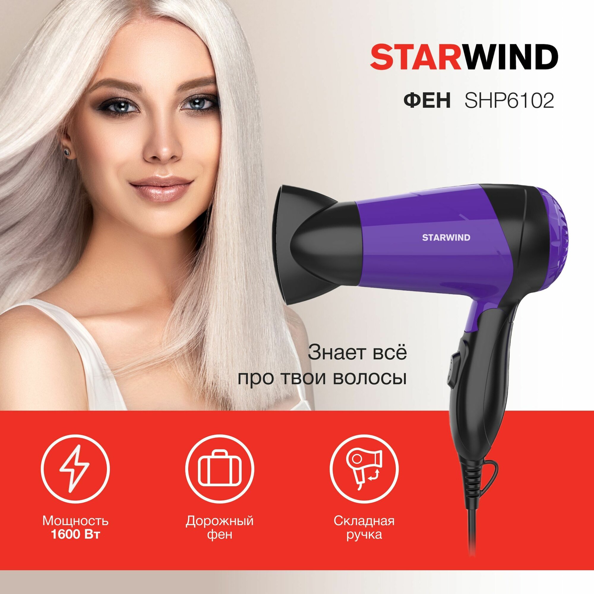 Фен Starwind SHP6102, 1600 Вт, черный/фиолетовый