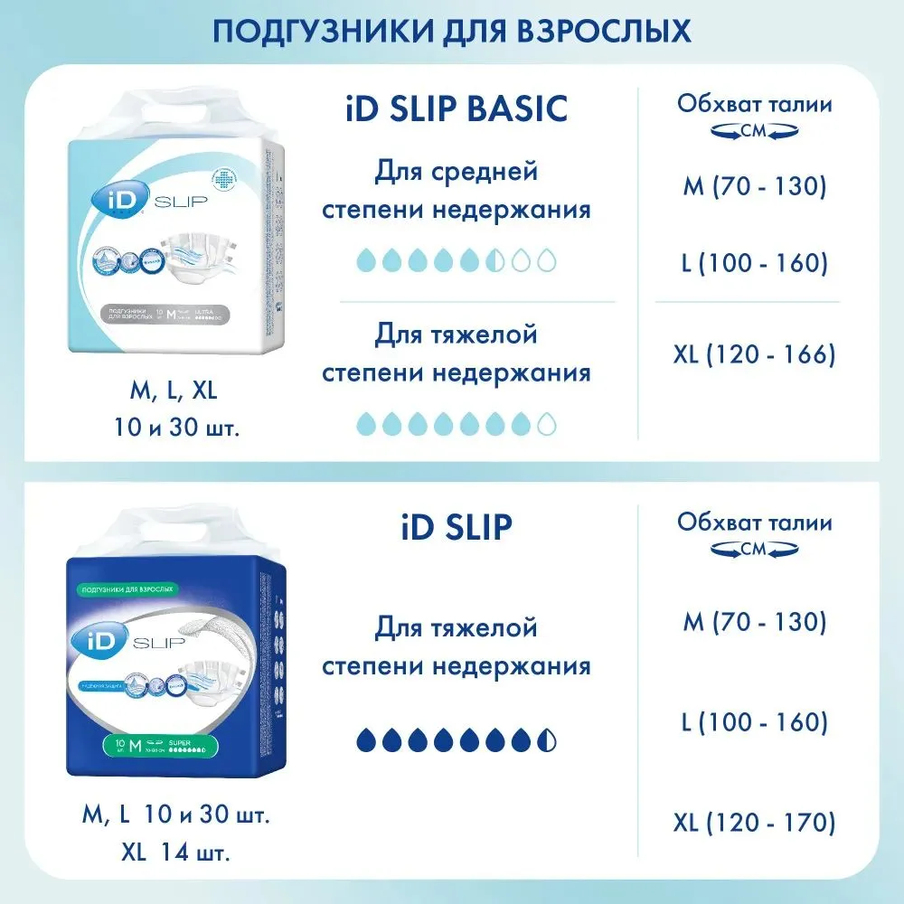 Подгузники для взрослых iD Slip, размер M, 10 шт.