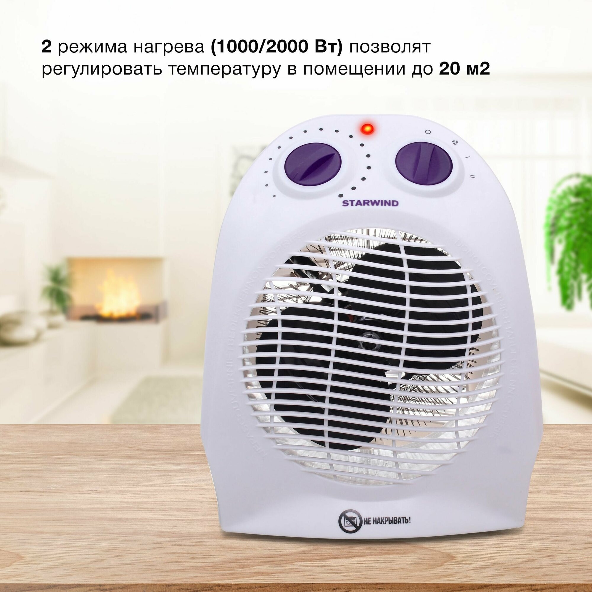 Тепловентилятор STARWIND SHV1001/SHV1005, 2 кВт, 40 м², белый/фиолетовый