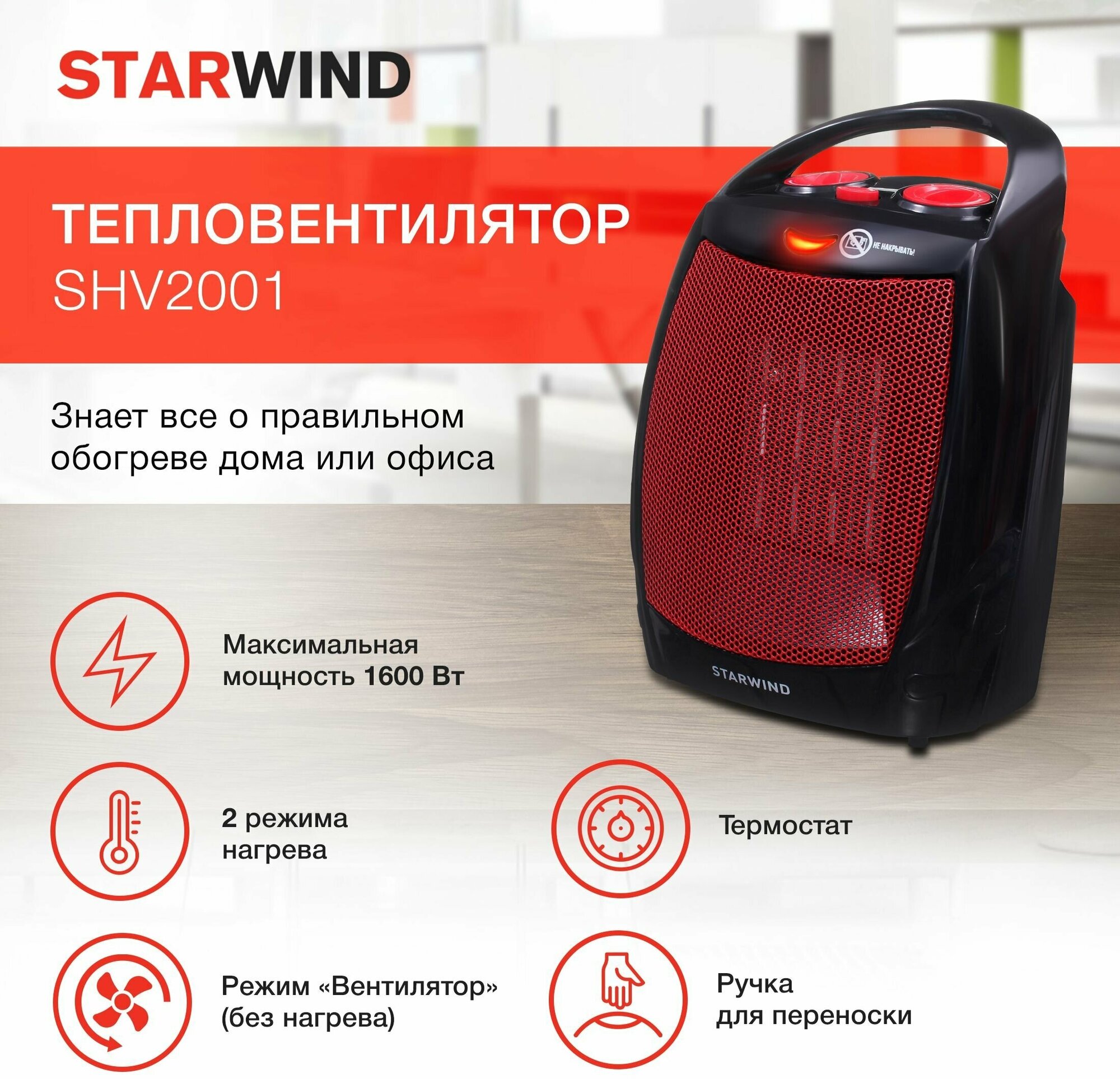 Тепловентилятор STARWIND SHV2001/SHV2005, черный/красный