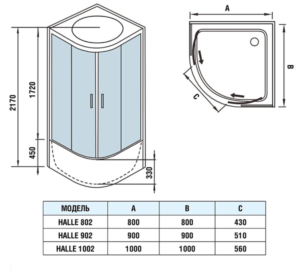 Душевые кабины WeltWasser HALLE 901 900х900х2170 мм