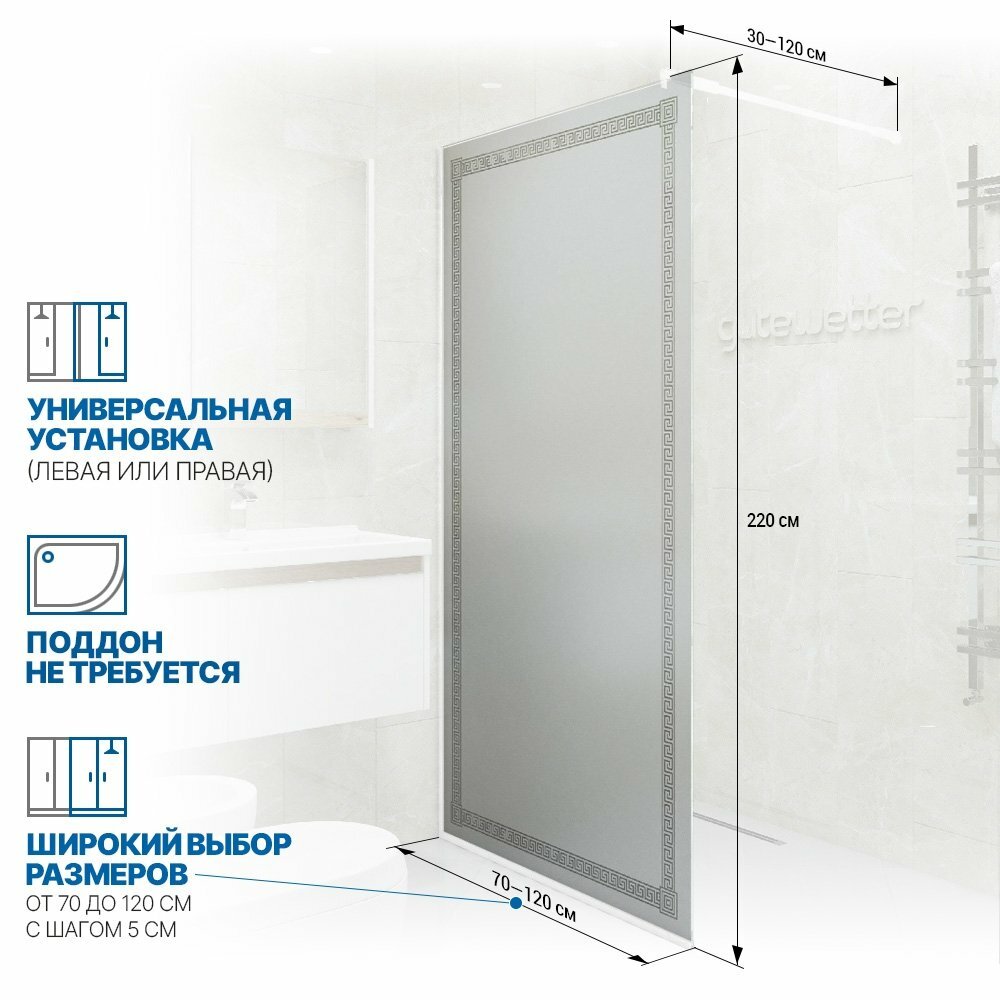 Душевая перегородка GWMPGL010V 75x220 см, цвет фурнитуры хром блестящий, цвет стекла матовый с рисунком, стекло закаленное 10 мм 22 900 ₽ Подробнее