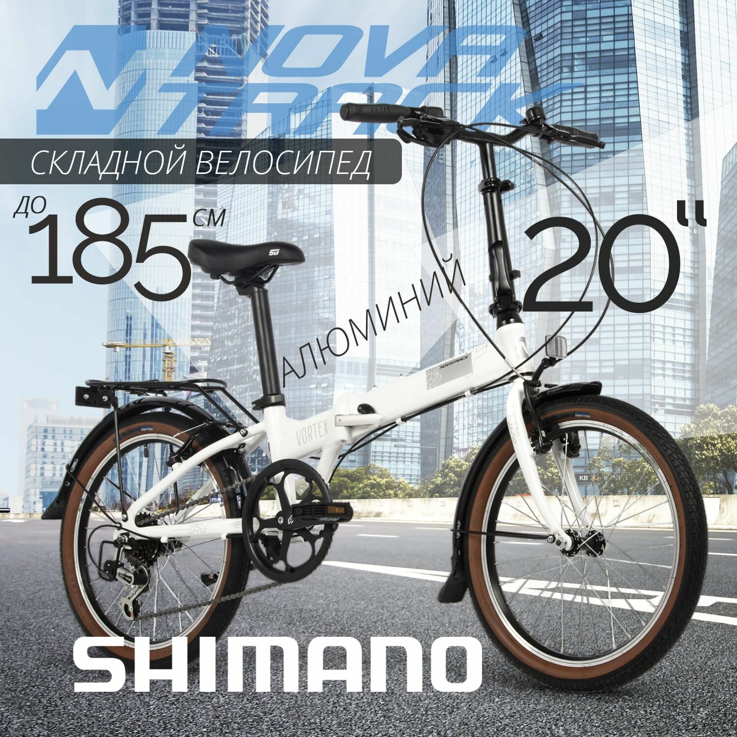 Складной велосипед Novatrack 24" VORTEX белый, складной алюм. Shimano 6 speed, стальная вилка, вынос, алюм.р 34 845 ₽ Подробнее