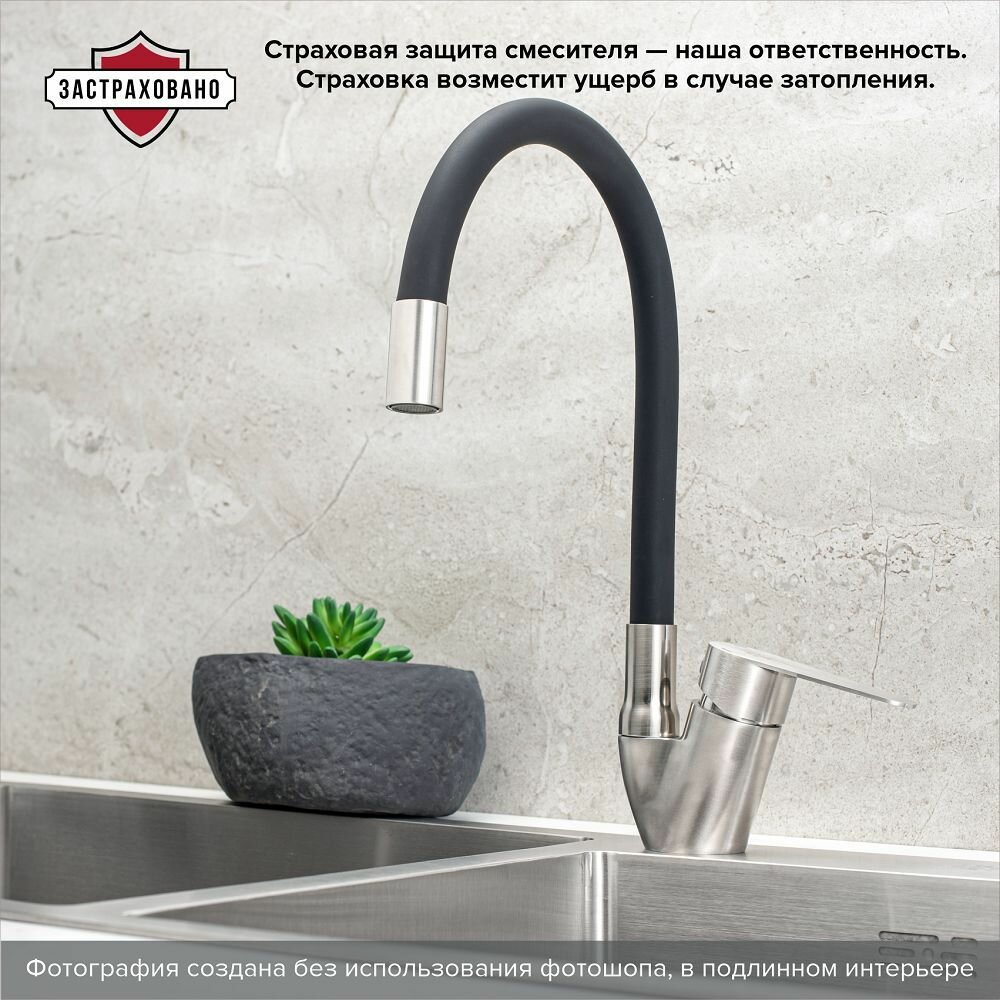 Смеситель для кухни РМС SUS124BL-017F, нержавеющая сталь, поворотный излив 2 760 ₽ Подробнее