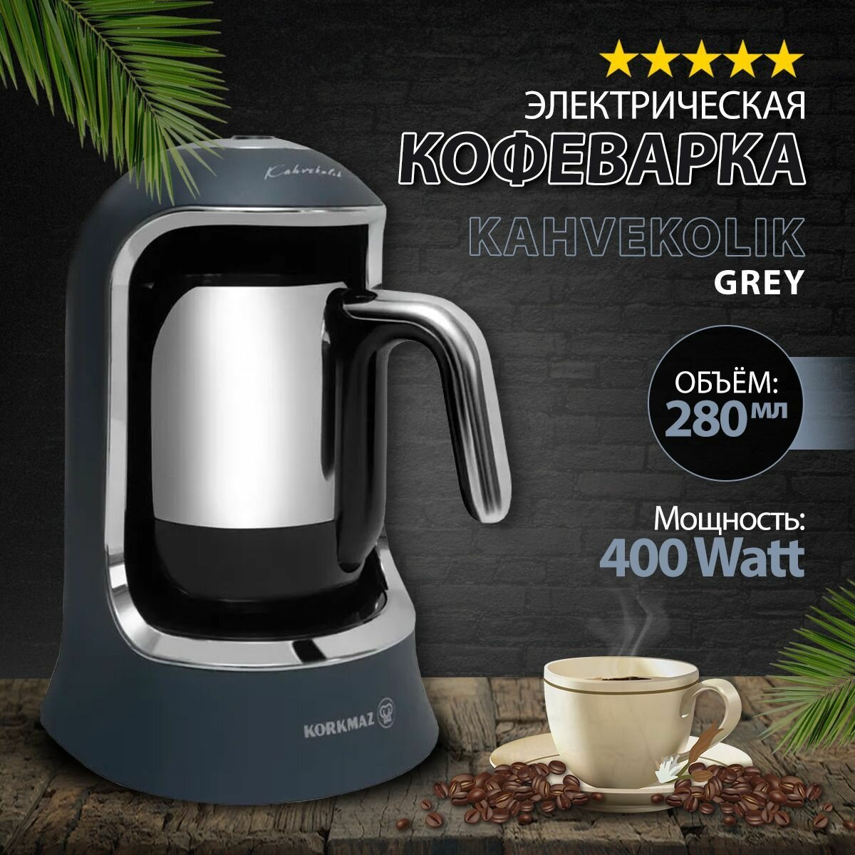 Кофеварка электрическая, кофемашина, турка для кофе, 280мл, Korkmaz Kahvekolik, 400W с автоотключением, слоновая кость 10 379 ₽ Подробнее