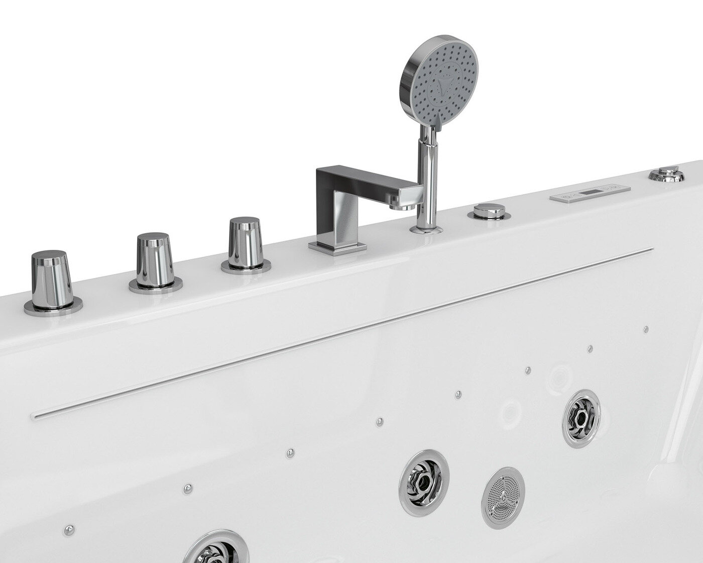| Функции | гидромассаж, аэромассаж, озонирование, противоскользящее покрытие, подводный свет , подсветка периметра, встроенное радио (хромотерапия) |