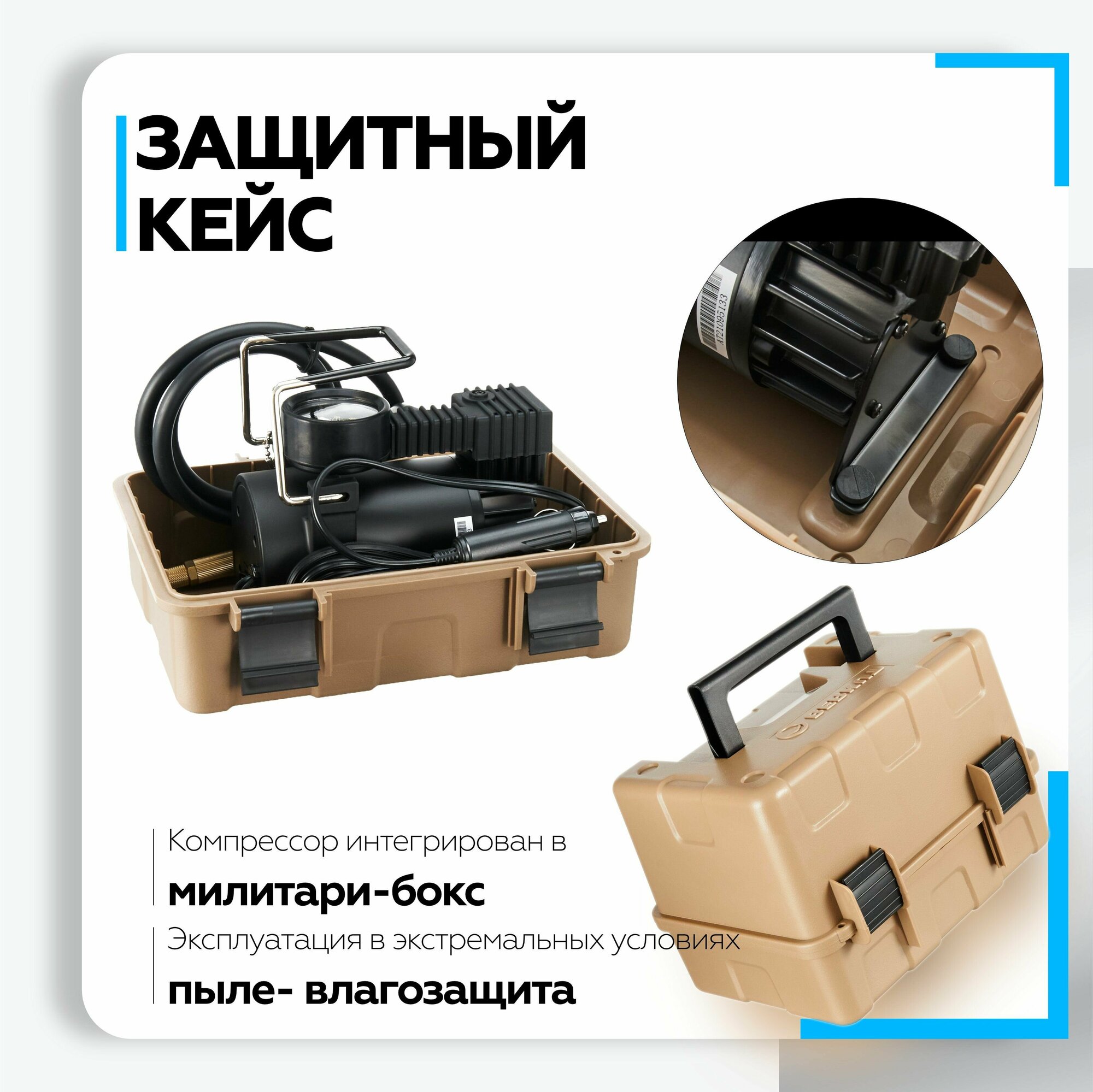Лучшие цены. BERKUT SPEC-15 предназначен для накачивания шин автомобилей и других транспортных средств. Главной особенностью устройства является его интеграция в пластиковый милитари-бокс, который позволяет эксплуатировать компрессор в экстремальных условиях и значительно упрощает его хранение и транспортировку. В компрессор внедрена новая поршневая группа, благодаря чему его производительность выросла до 44 л/мин. Магазины в вашем городе.