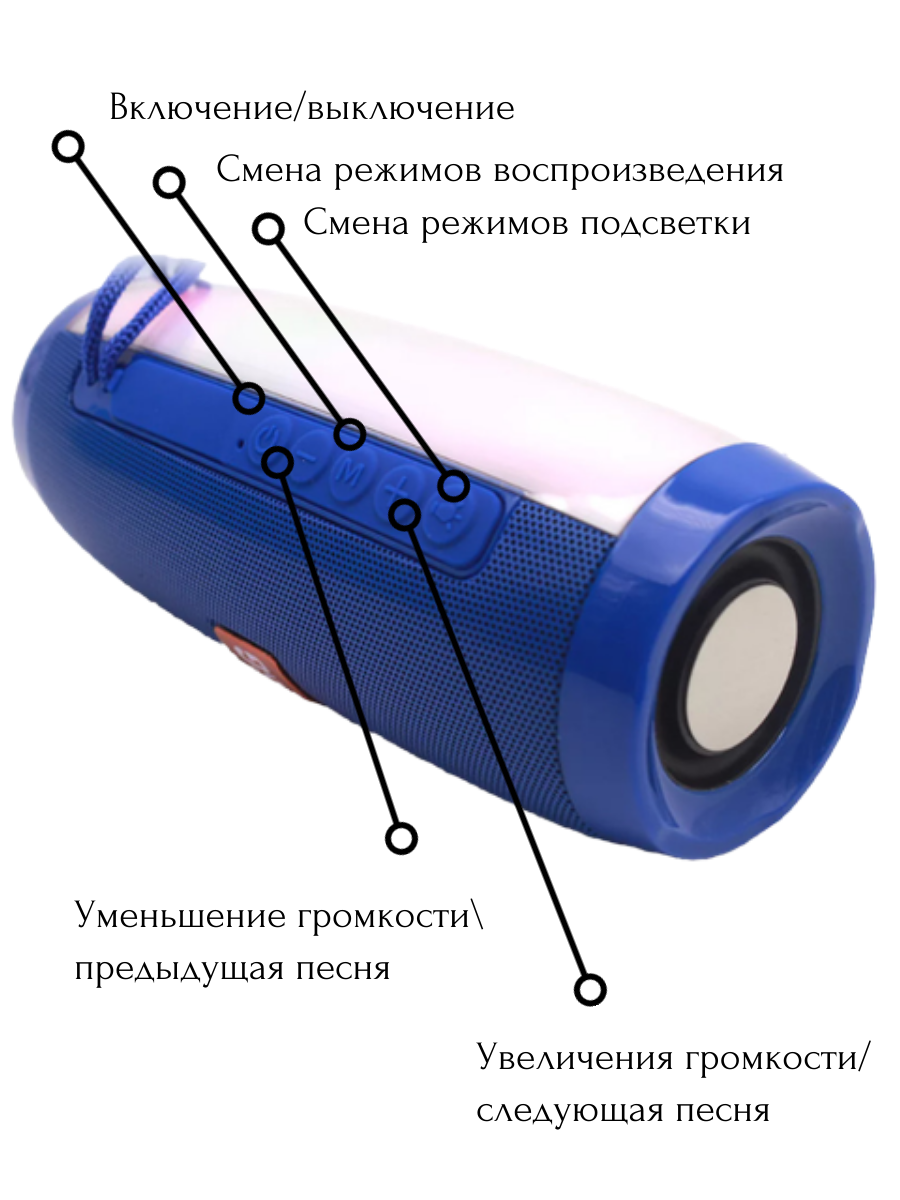 Беспроводная Bluetooth колонка TG-157, Портативная колонка с LED подсветкой, синяя