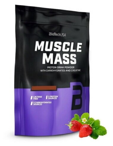 Гейнеры BioTech MUSCLE MASS 1000 g (Клубника)