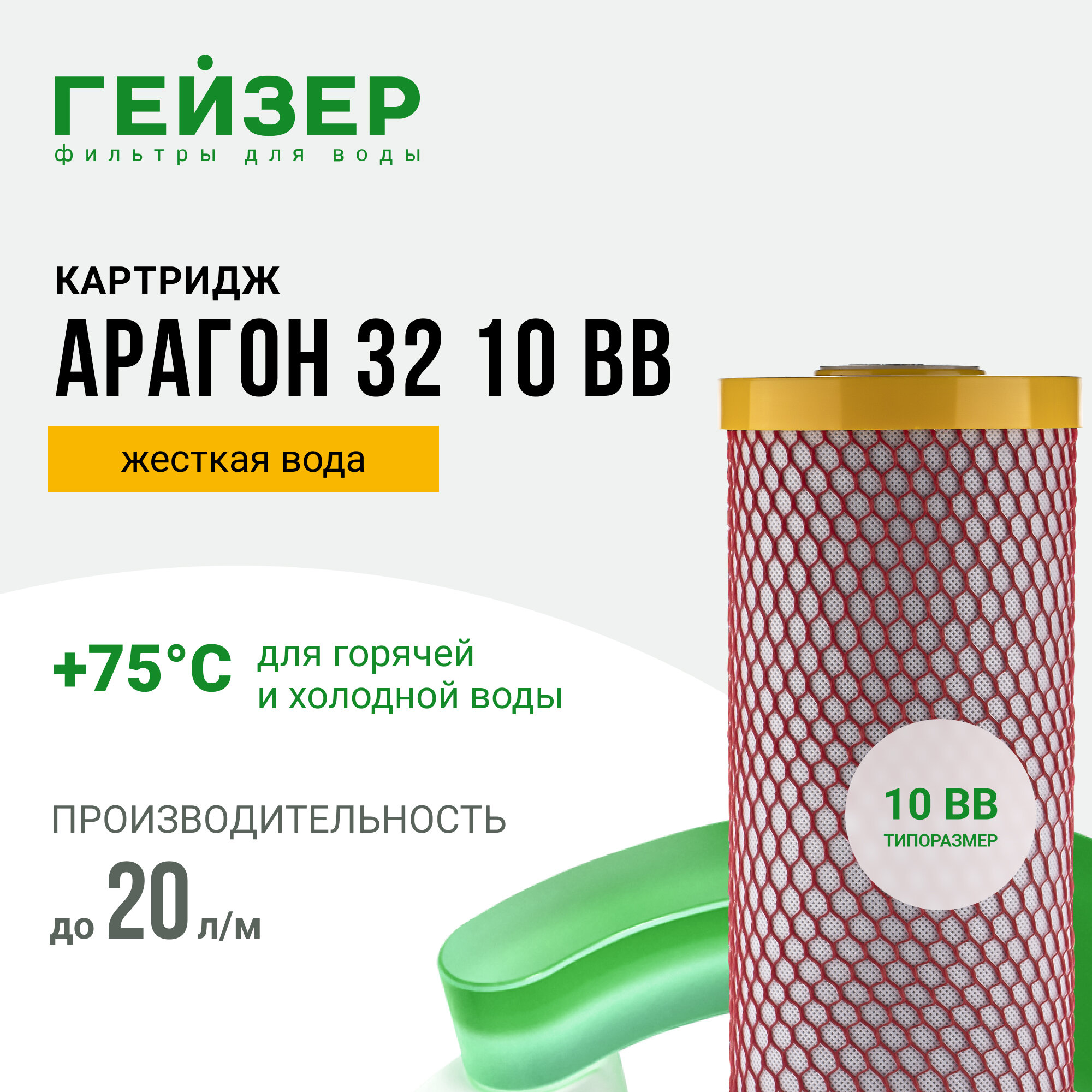 Картридж Арагон-32 10BB для комплексной очистки и умягчения Гейзер 30077