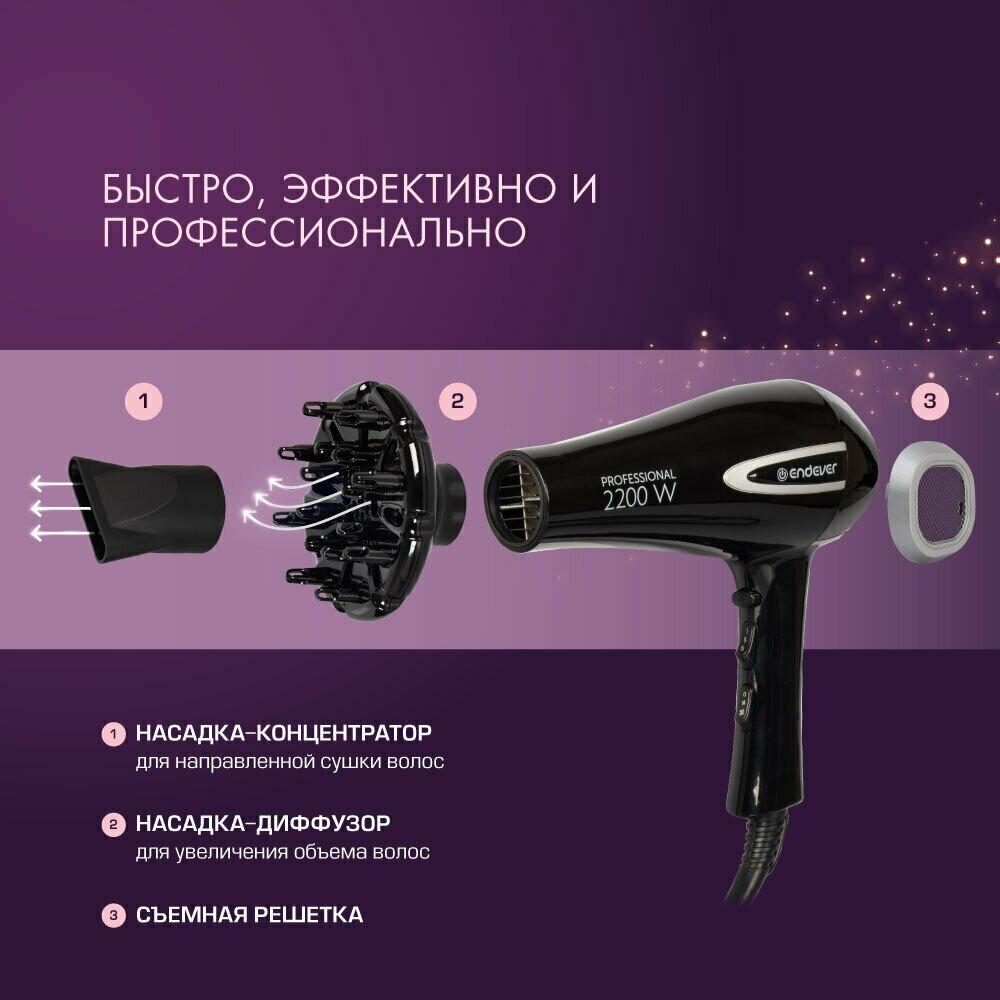 Фен ENDEVER Aurora 474, 2200Вт, черный