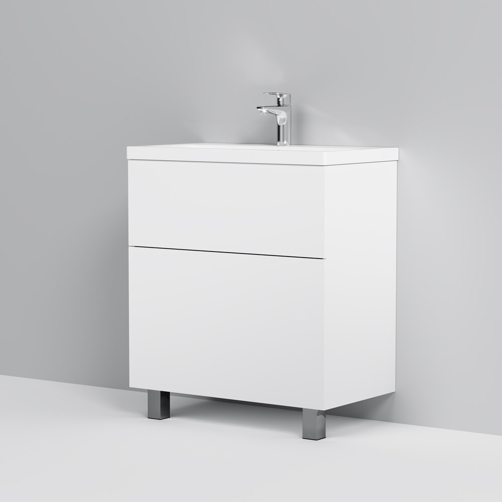 Тумба под раковину напольная AM.PM GEM M90FSX06022WG32, 60см, 2 ящика, белый глянец, регулировка ящиков, на ножках, под раковину, тумба под ванну с раковиной, система открывания push-to-open, эмалевое покрытие, Германия