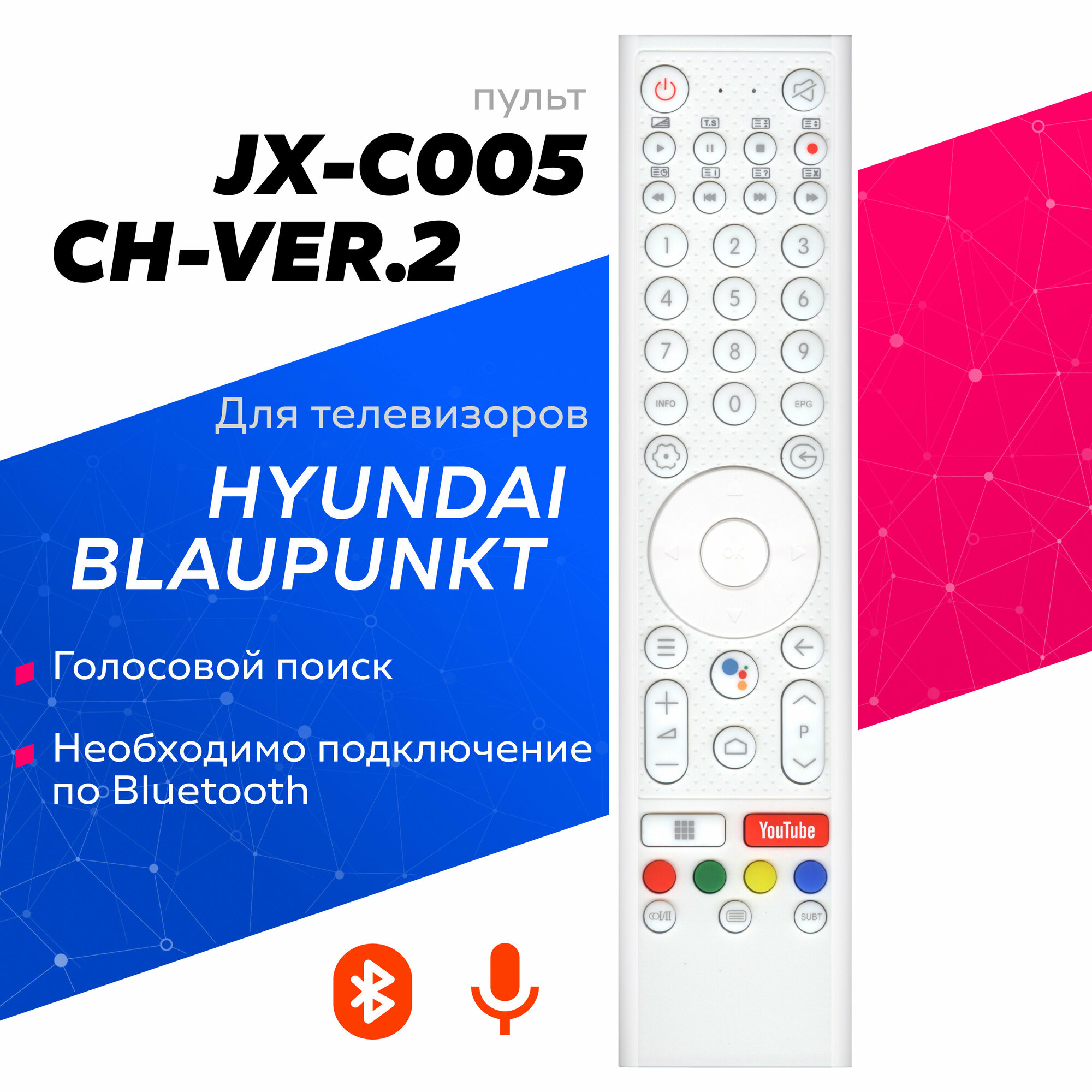 Телевизоры Голосовой пульт JX-C005 CH-VER.2 для телевизоров Hyundai / Blaupunkt