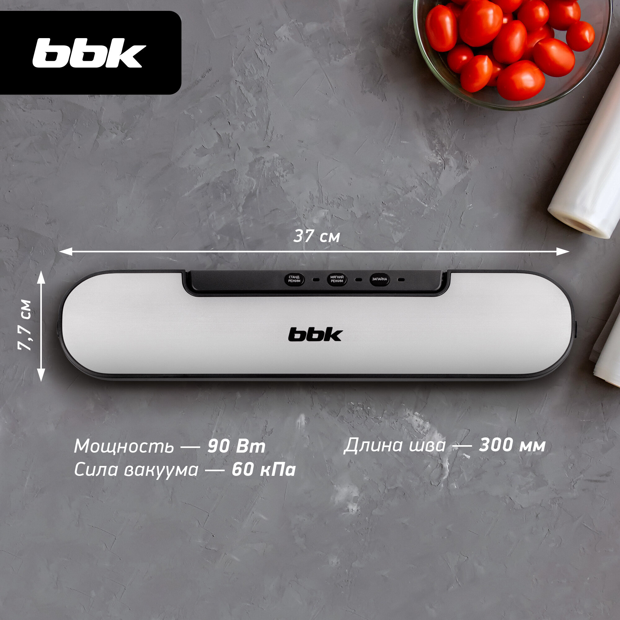 Вакуумный упаковщик BBK BVS601 [4.5 л/мин, 90 Вт, пайка 30 см, пленка в комплекте, темно серый] 3 190 ₽ Подробнее