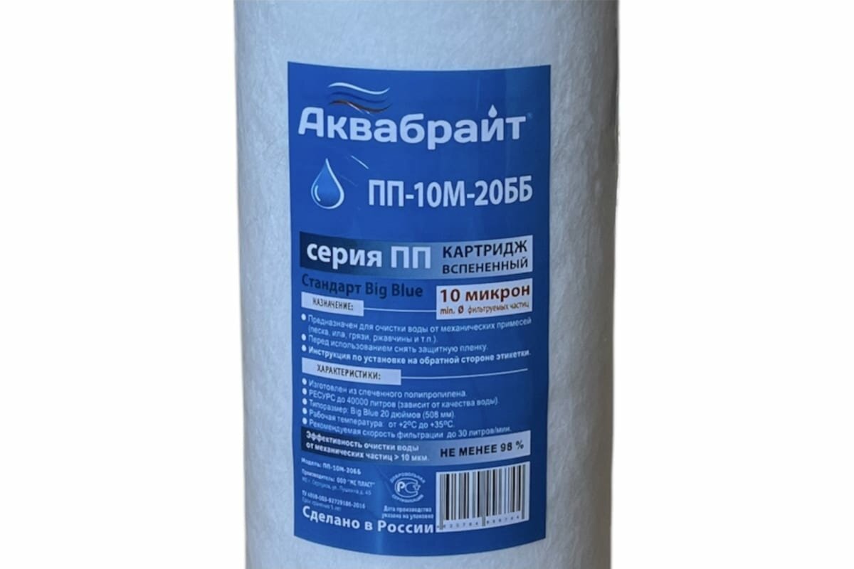 Аквабрайт картридж для механической очистки воды ПП-10М-20ББ, 1 шт.