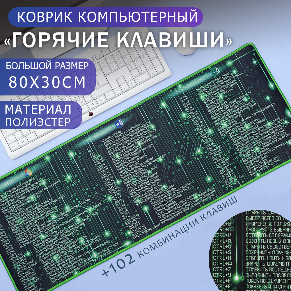 Коврики для мышек Коврик компьютерный на стол для клавиатуры и мышки Горячие клавиши 800х300 мм, большой, зеленый, игровой, подарочный