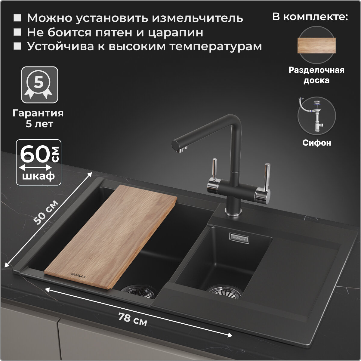 Кухонная мойка Granula Estetica 78х50 ES-7808 черный 14 850 ₽ Подробнее