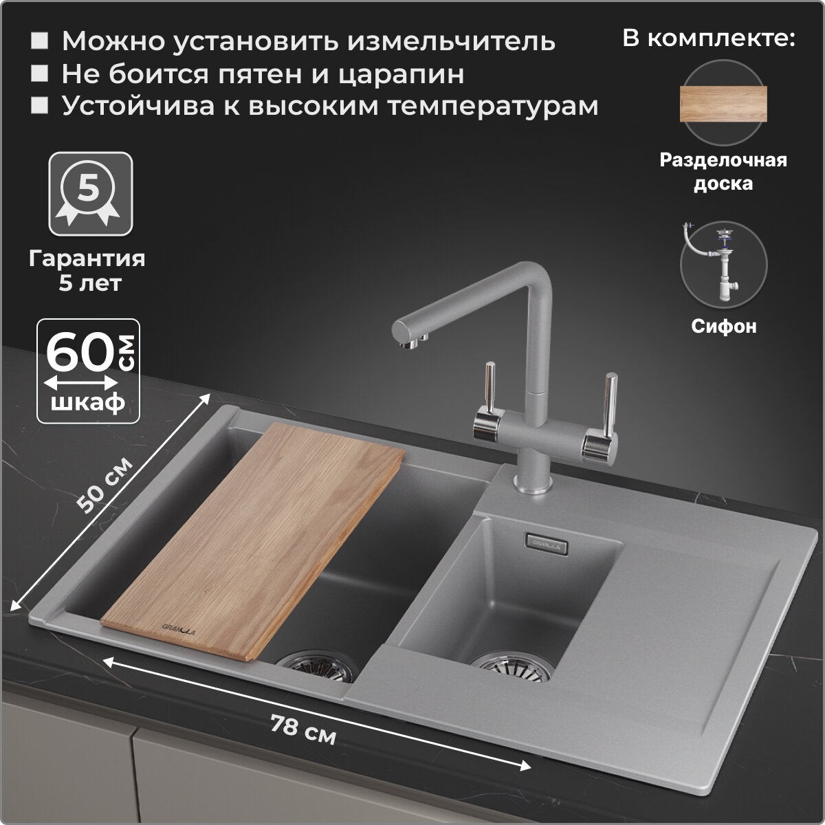 GR-8101, пирит, кухонная мойка, кварц