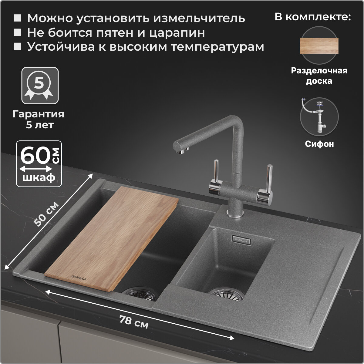 Мойка из композитного материала Granula GR-8101 черный 14 760 ₽ Подробнее