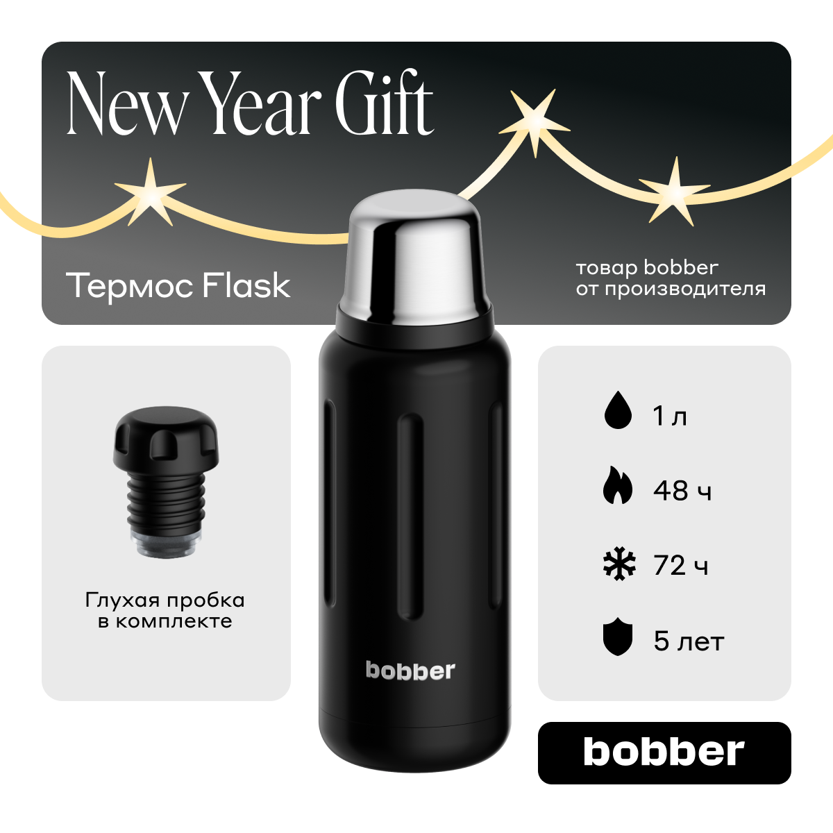 Термос BOBBER Flask-1000, 1л, серебристый/ черный [flask-1000/glossy]