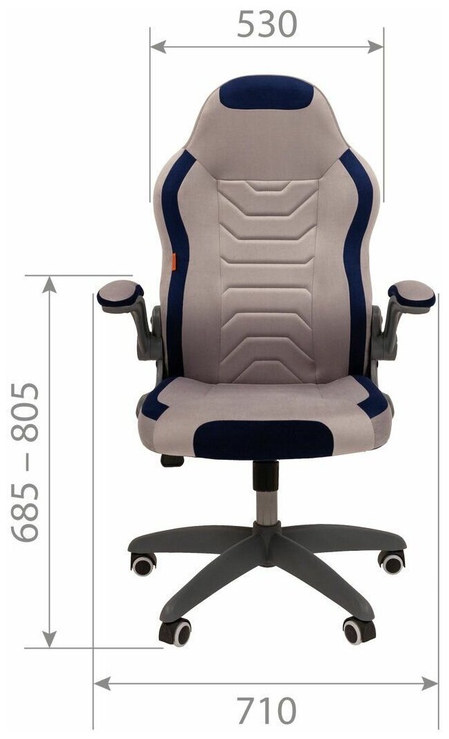 Игровое компьютерное кресло CHAIRMAN GAME 50, велюр, серый/синий, с откидными подлокотниками
