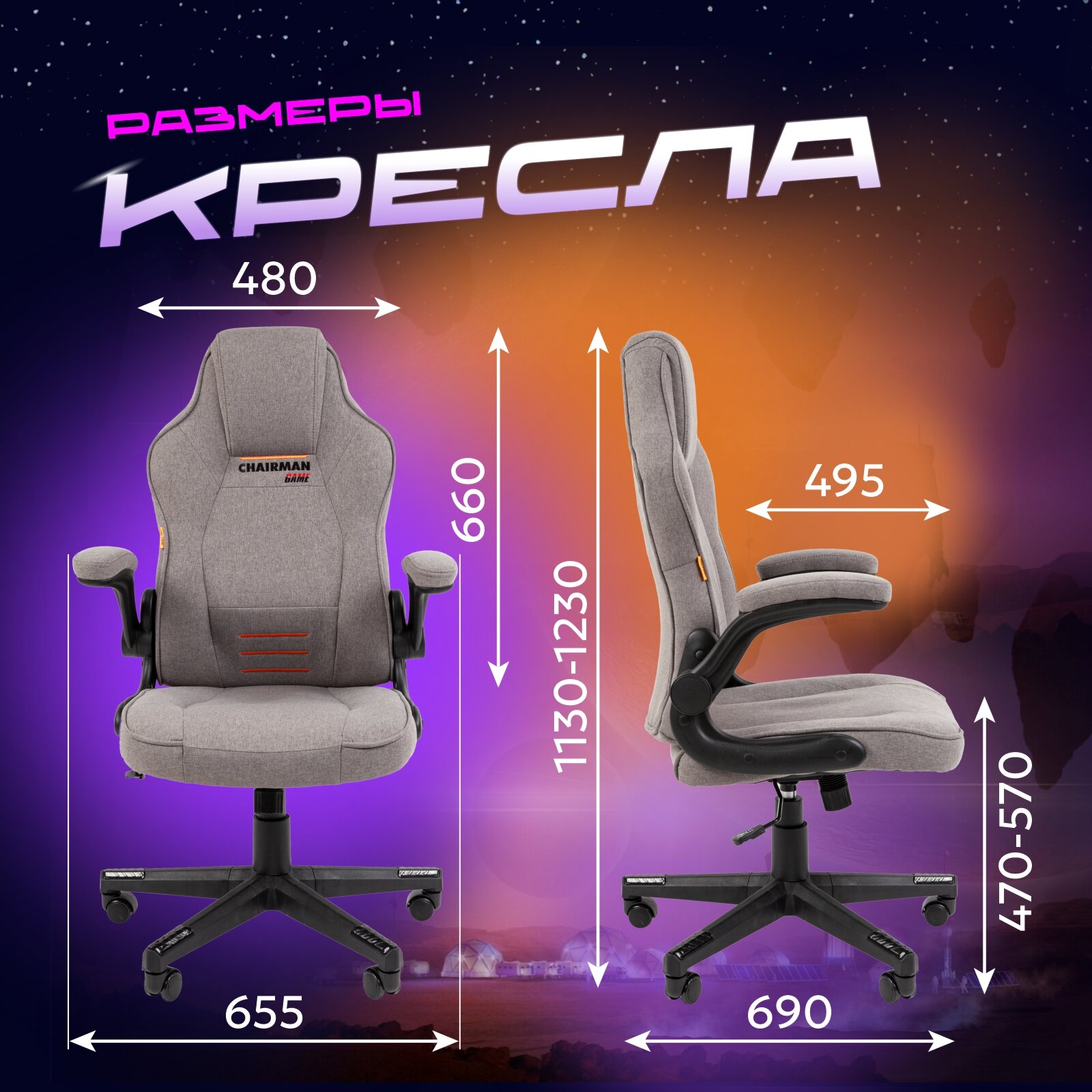 Игровое компьютерное кресло CHAIRMAN GAME 50, велюр, серый/синий, с откидными подлокотниками