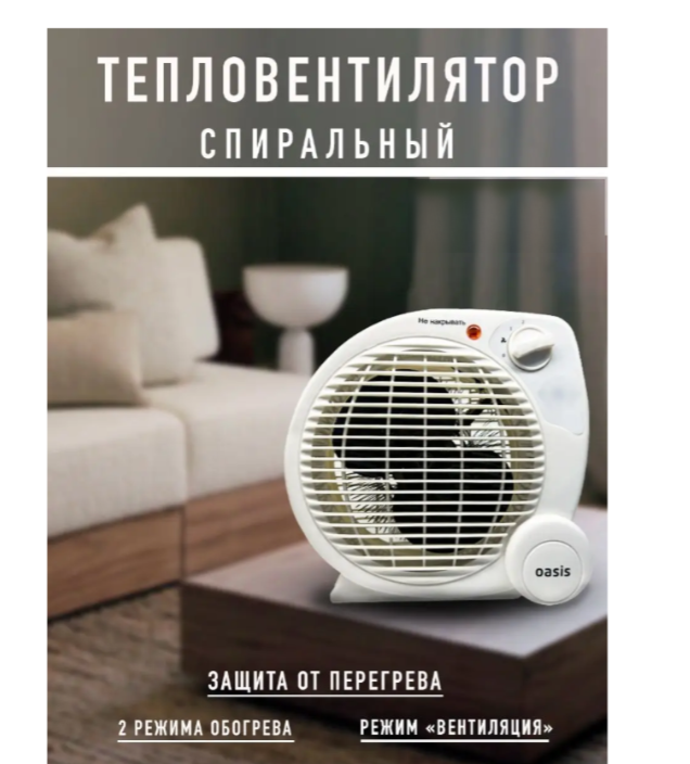Тепловентилятор 2000ВТ (1000/2000вт) 2РЕЖИМА ПЛ об 20КВ М Спираль Класс 2 Oasis Sd-20r 92202 .