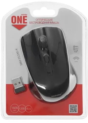 Мышь оптическая беспроводная SmartBuy ONE 352, USB, черная (SBM-352AG-K)