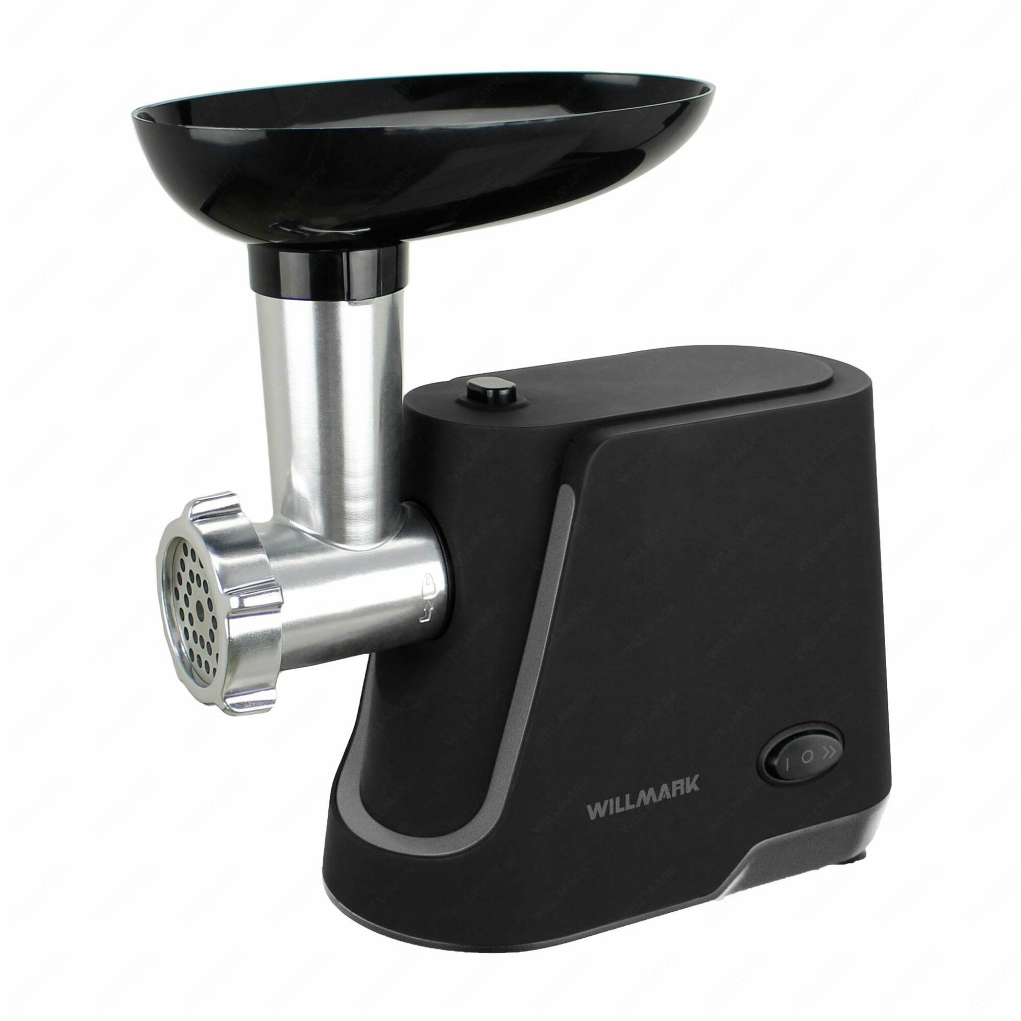 Мясорубка Мясорубка Willmark WMG-2013B, 1000Вт/2000 Вт при блокировке, 2.3 кг/мин, 2 решётки, насадка для сосисок и насадка для кеббе, черный