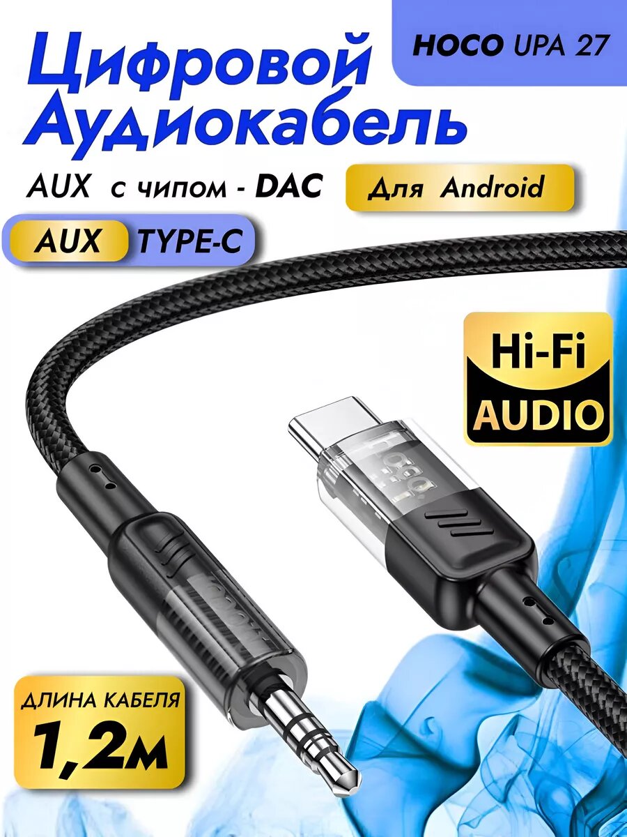 Зарядки для гаджетов Аудиокабель Hoco UPA27 AUX 3.5 мм Type-C, 1 м, черный
