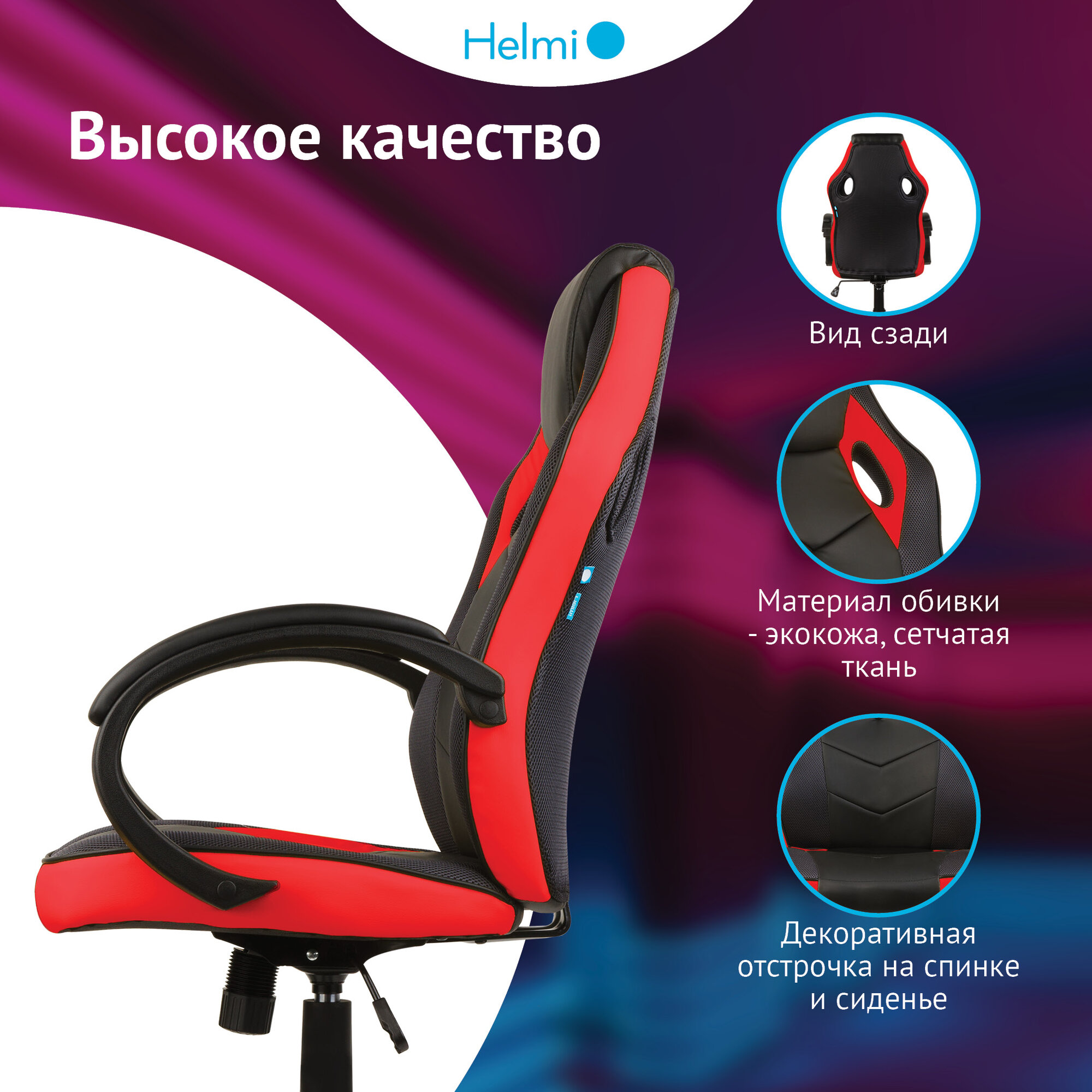 Кресло игровое Helmi "Boost", экокожа, ткань черная, красная (279722)