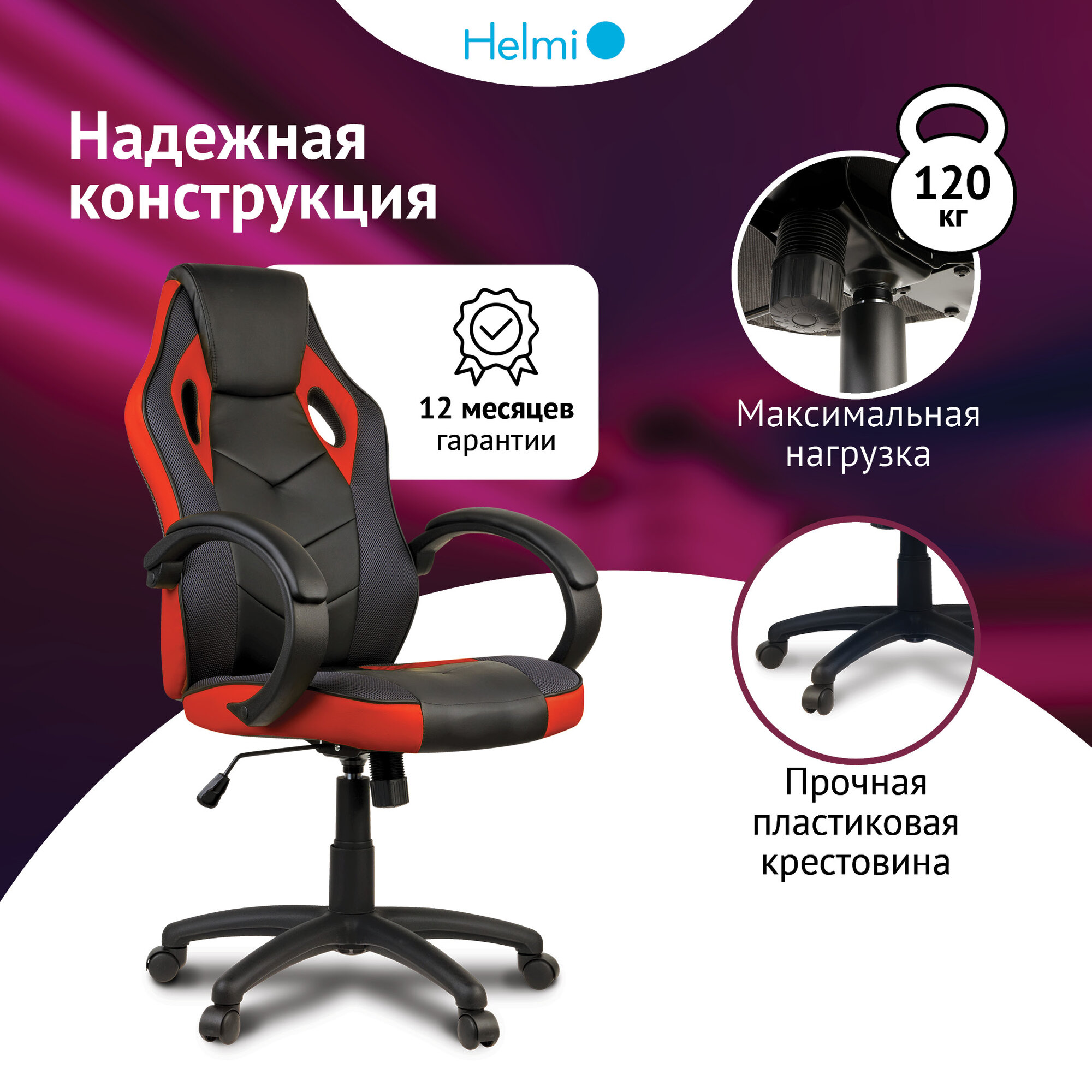 Кресло геймерское HELMI HL-S07 "Boost", экокожа/ткань черная/красная 10 260 ₽ Подробнее