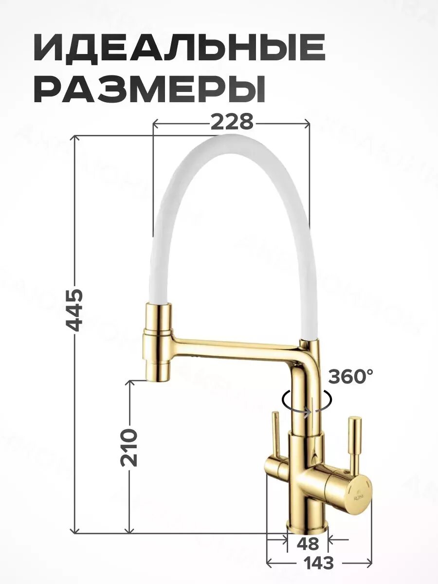 Смесители для кухни с гибким изливом и подключением фильтра ROSE R658Е (латунь, цвет золото)