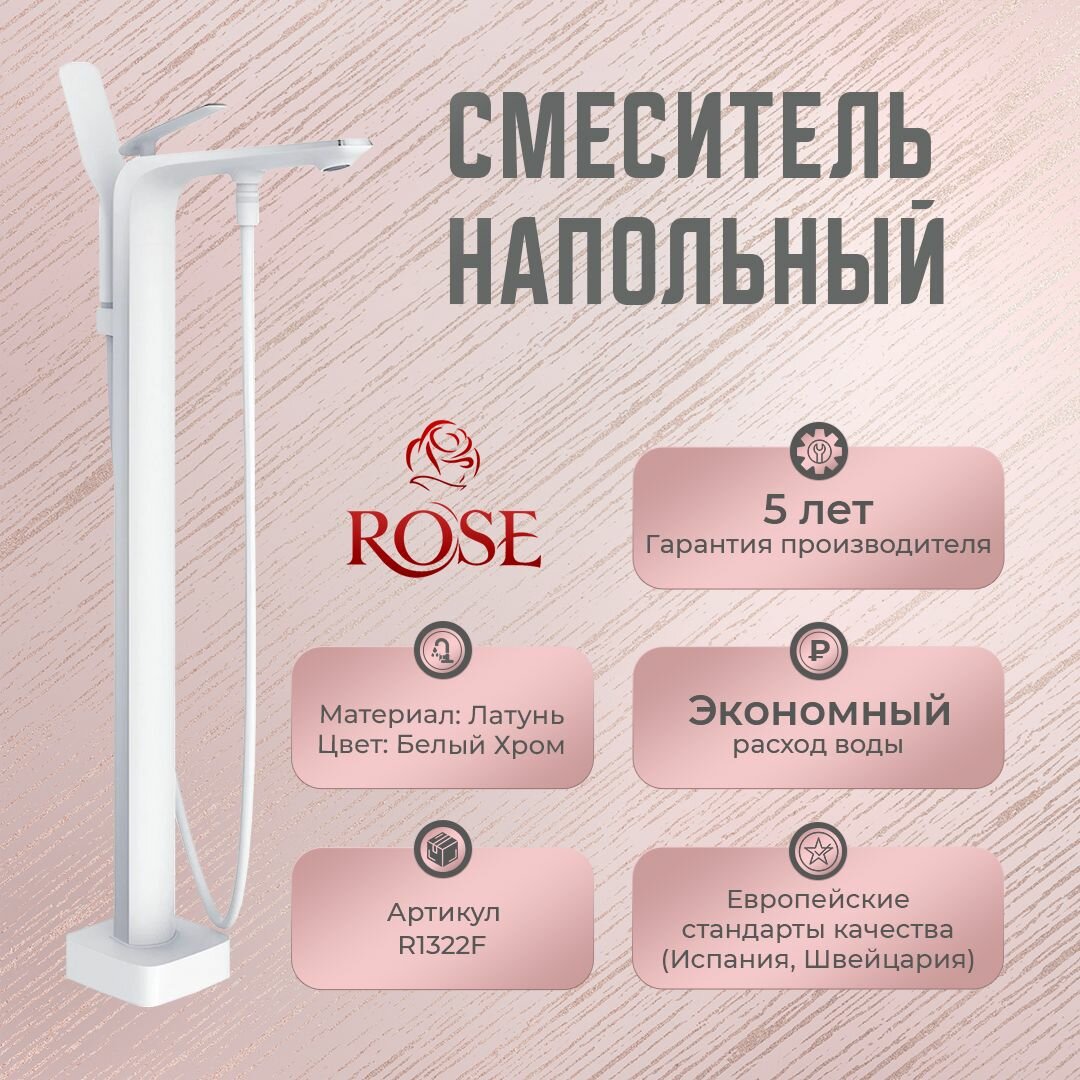 Смеситель для ванны напольный Rose R1322F, белый/хром