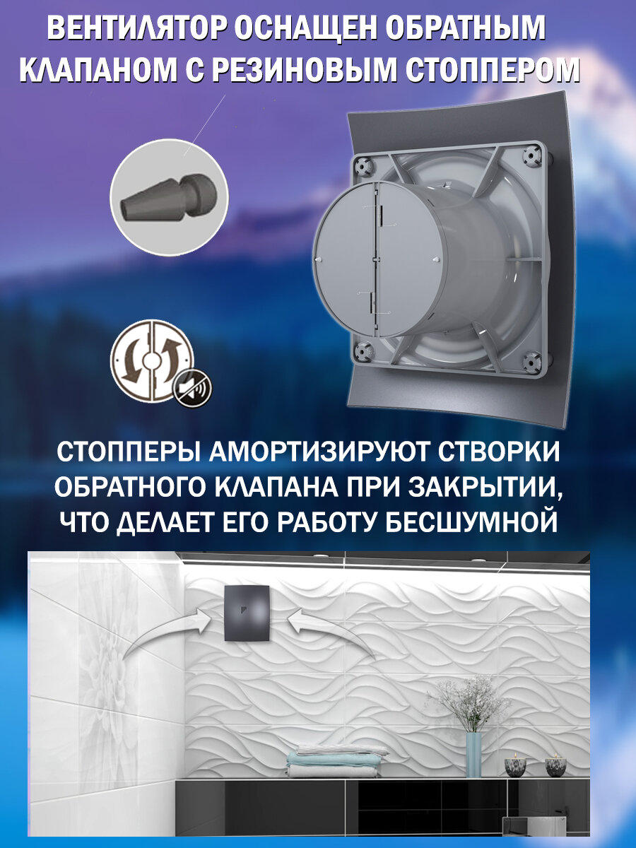 Breeze 4C dark gray metal вентилятор вытяжной бесшумный c обратным клапаном на шарикоподшипниках, тёмно-серый металлик D98
