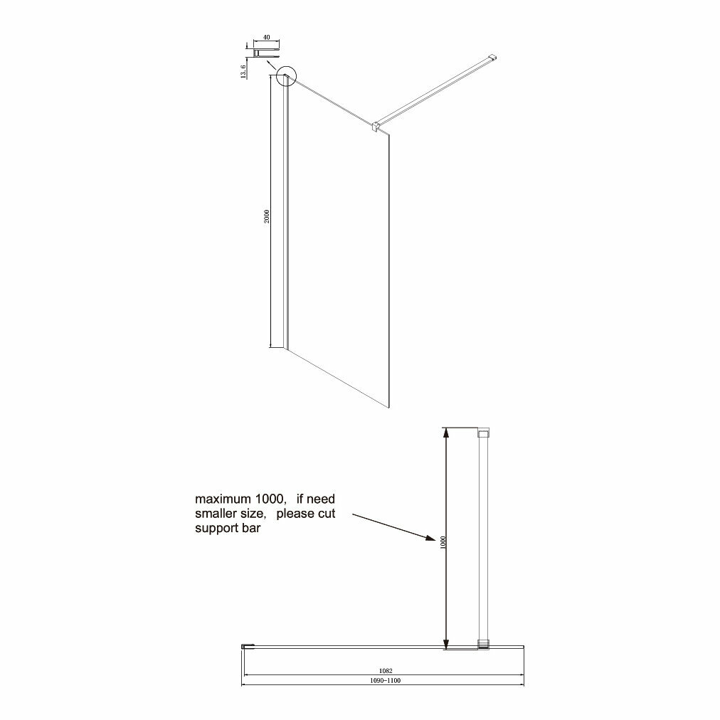 Душевая перегородка 110 см со свободным входом Ambassador Walk-in 15031111: душевая ширма из стекла 8 мм, профиль черный