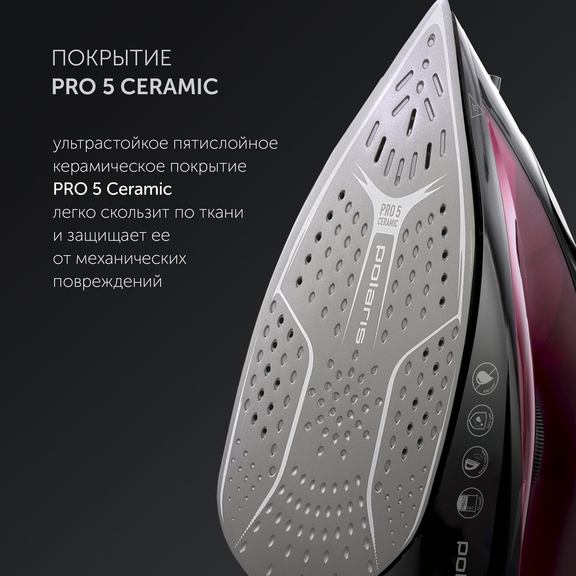 Утюг Polaris PIR 2430K, 2400 Вт, подошва керамическая