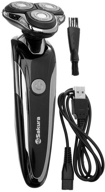 Электробритва Sakura SA-5425BK, 3 головки, триммер, влаж.бритьё, АКБ