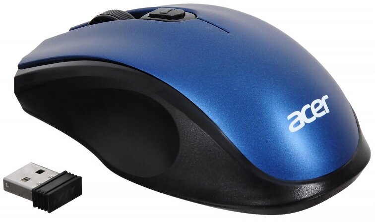 Мышь Acer OMR031, оптическая, беспроводная, USB, черный и синий [zl.mceee.008]