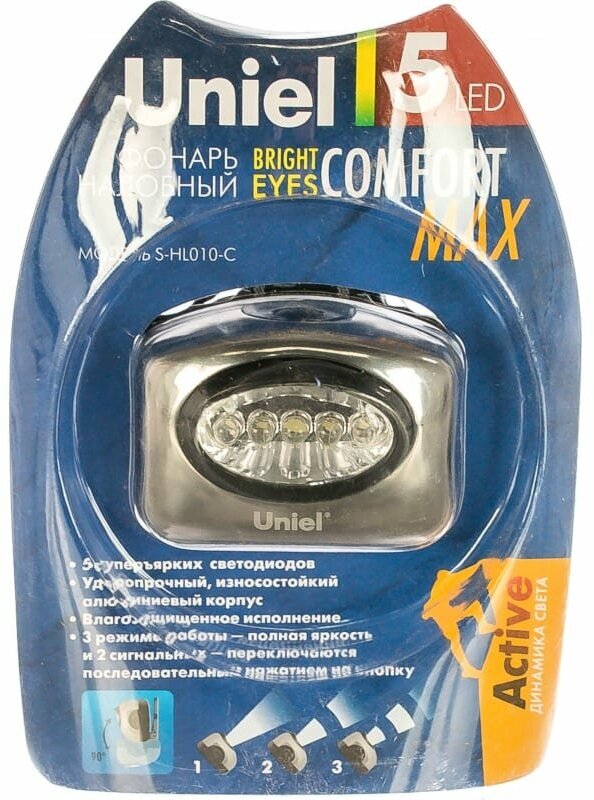 Фонарь Uniel Налобный S-hl010-c Стандарт 5ХLED 3ХААА Алюмин Корп Кламшел Uniel 03211 .