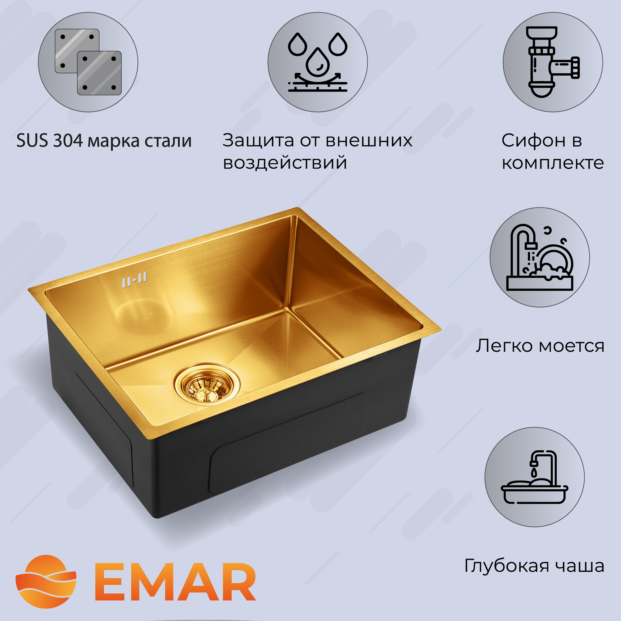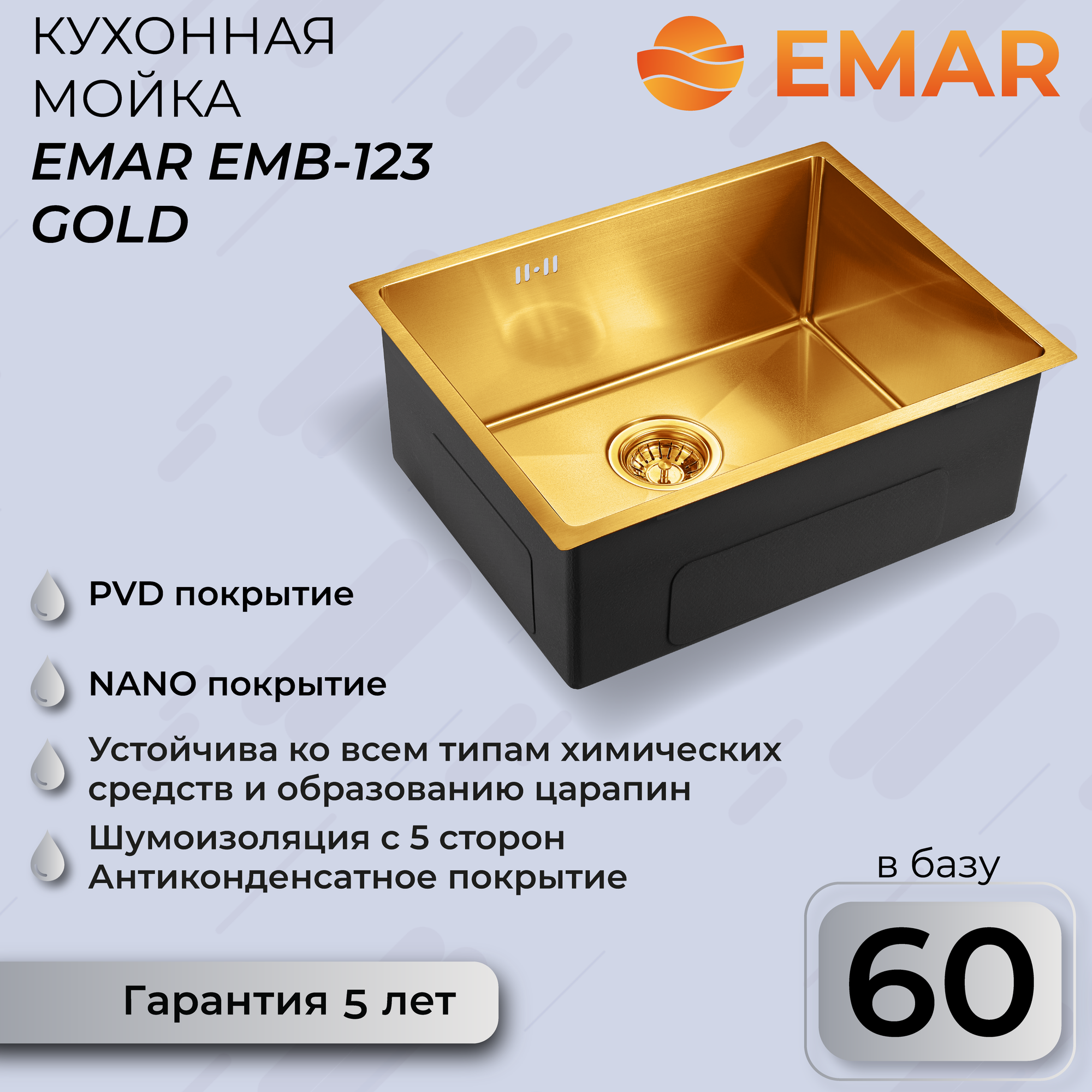 Кухонная мойка Мойка для кухни EMAR PVD Nano 123 (EMB-123 PVD Nano Golden) Золото EMAR