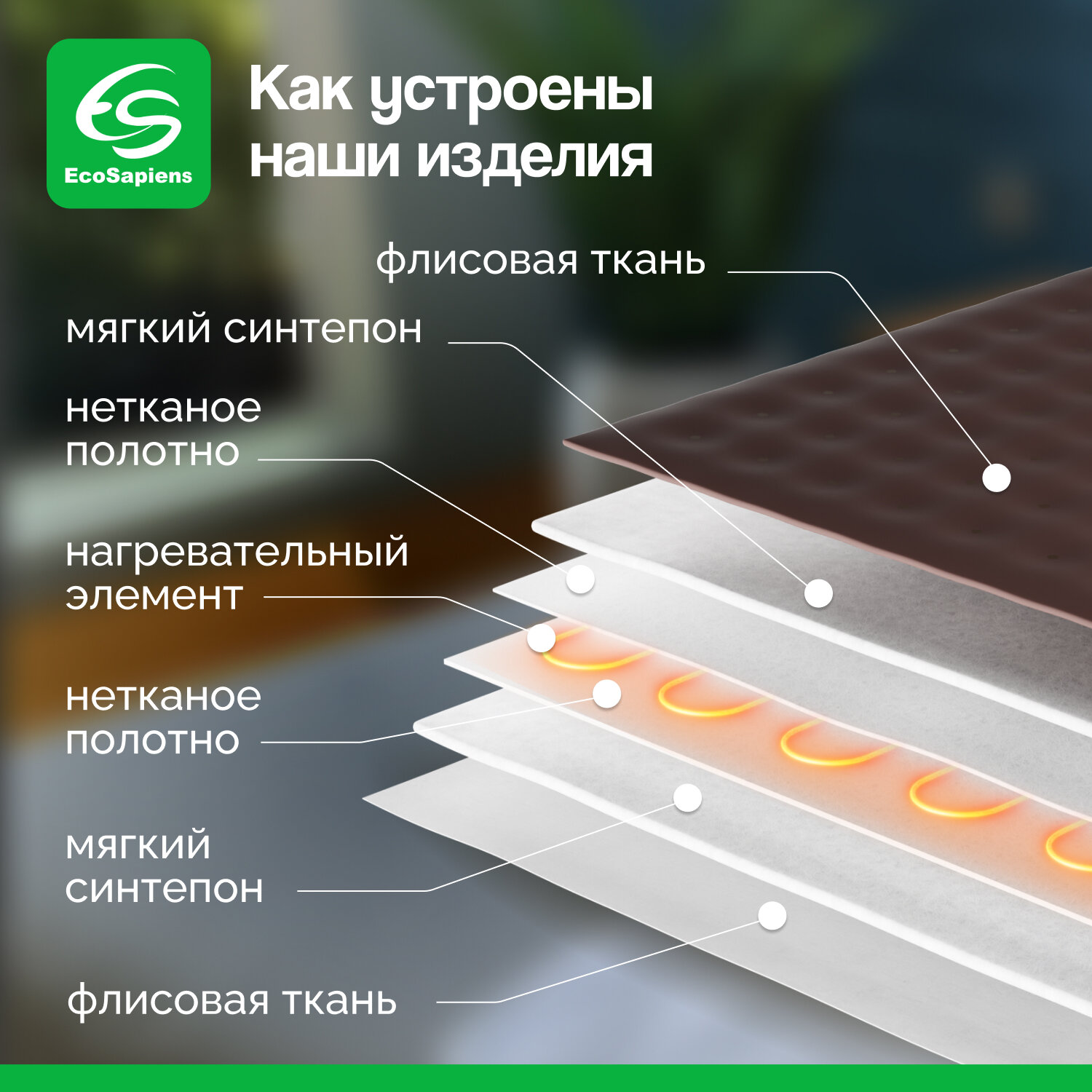 Электрогрелка EcoSapiens Flisa, грелка электрическая для ног и тела, флисовая, 40х50 см